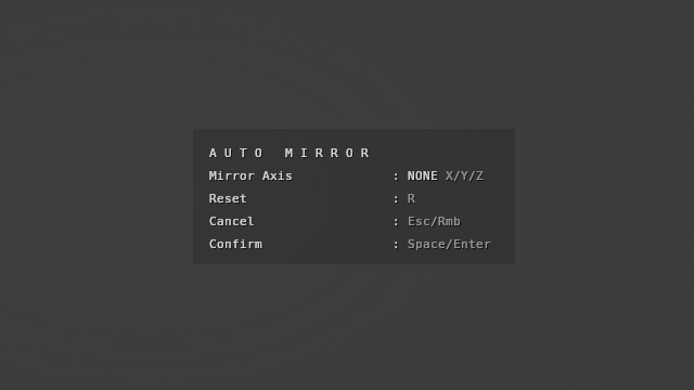 After deciding which axis or axes you want the active mesh mirrored, you can use the `Space` or `Enter` hotkey to finalize the entire operation.