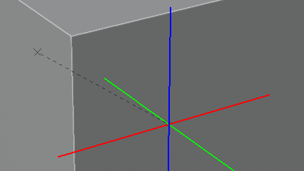 There is also a striped black line that leads from the x to the origin point of the active object where the 3D axis widget of the modal operator is located.